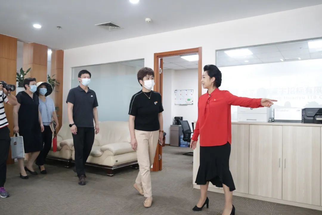 陈淑珍一行在北京先锋寰宇党支部书记孟岩和执行董事解礼维的陪同下,对公司进行实地参观,详细了解公司发展经营、未来规划及党组织阵地建设等情况。