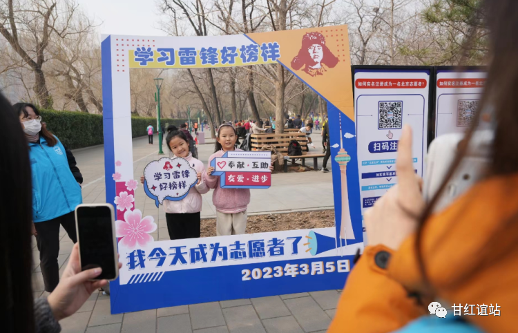 “妈妈快看,我今天也成为雷锋了!”一名刚刚在“志愿北京”平台完成志愿者实名注册的小朋友,高高举起印有“向雷锋同志学习”的手举牌开心地拍照留念。