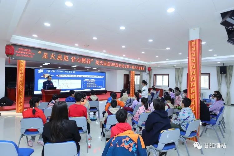 来自航天五院508所的青年志愿者刘欢,正结合自己承担神舟飞船回收着陆分系统、火星探测伞系减速分系统等国家重大型号研制的亲身经历,为地区青少年们科普载人航天知识。一颗颗热爱航天的种子,在孩子们的心中悄然生根发芽。