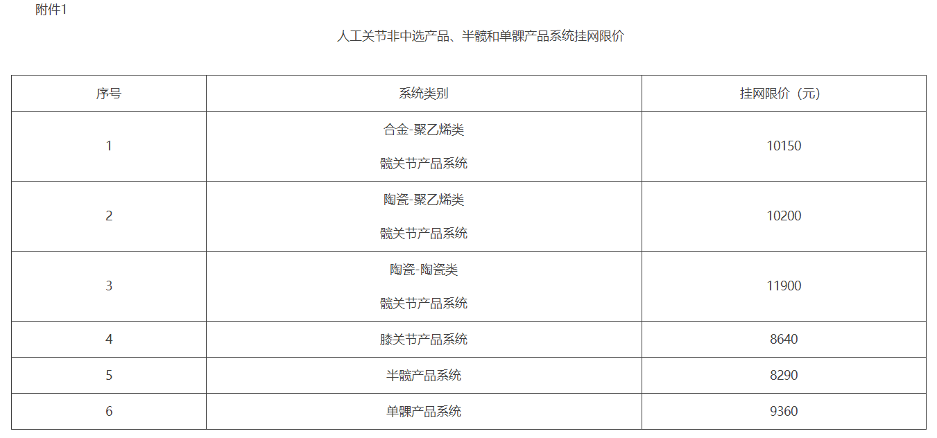 附件:1.人工关节非中选产品、半髋和单髁产品系统挂网限价