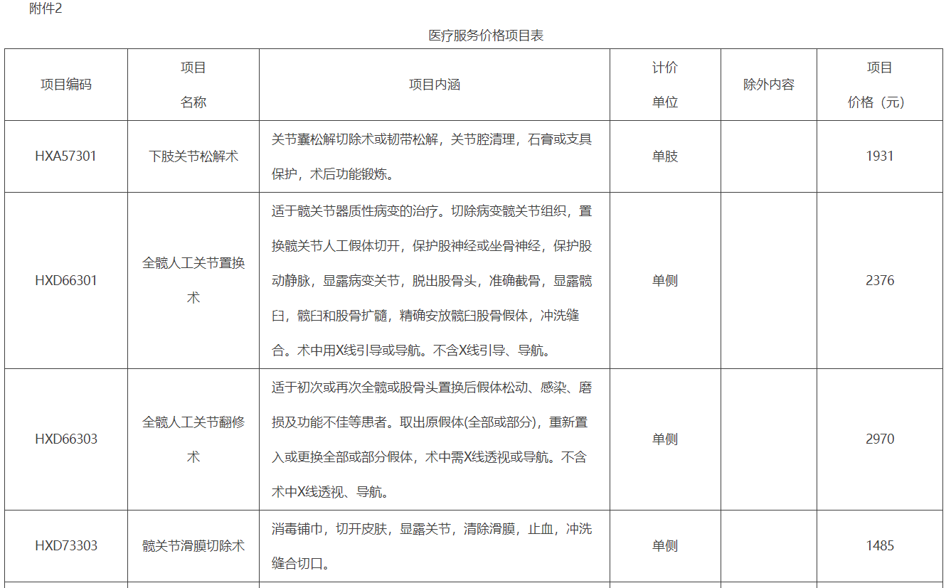 2.医疗服务价格项目表