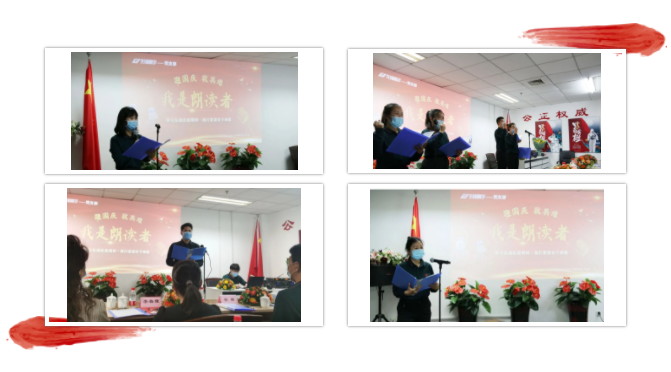 (先锋寰宇党支部党员及入党积极分子上台朗读诗歌)