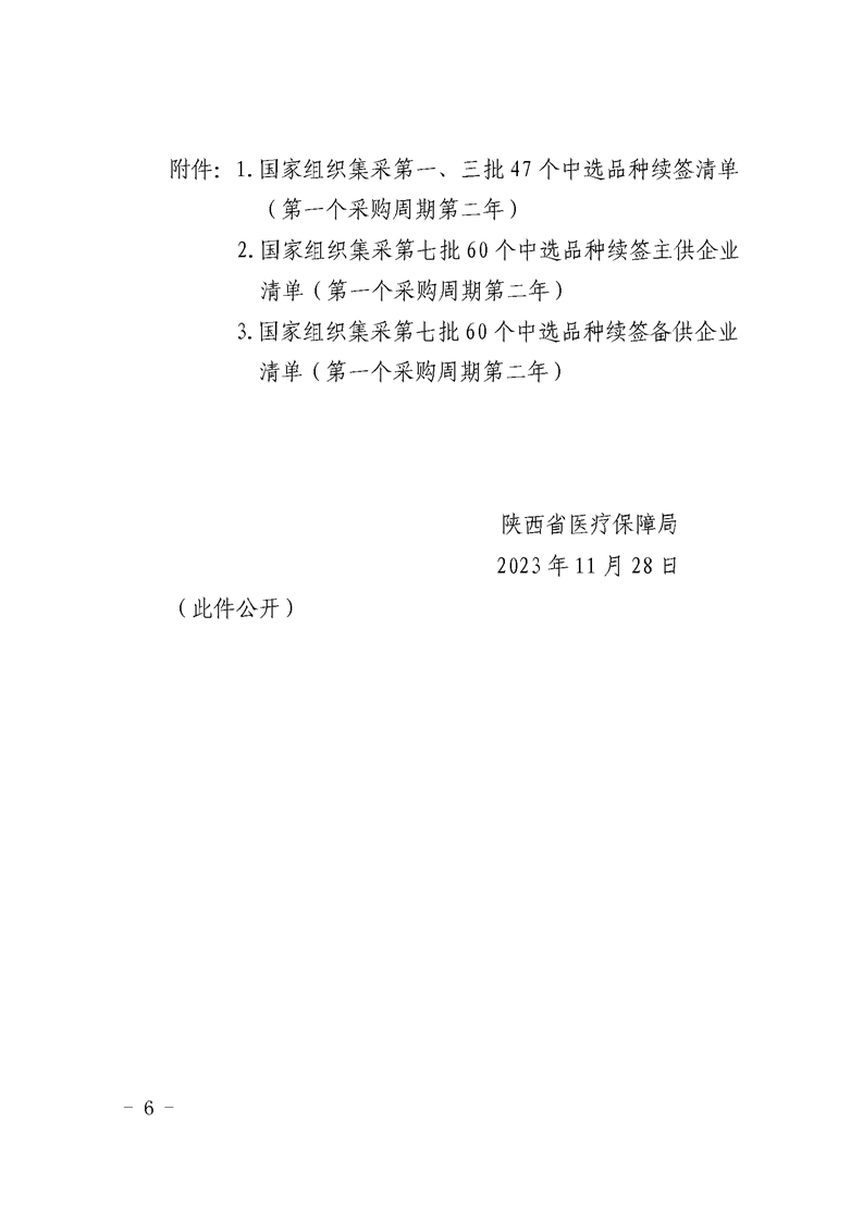 陕西省医疗保障局关于做好国家组织部分集采药品采购协议续签工作的通知附件