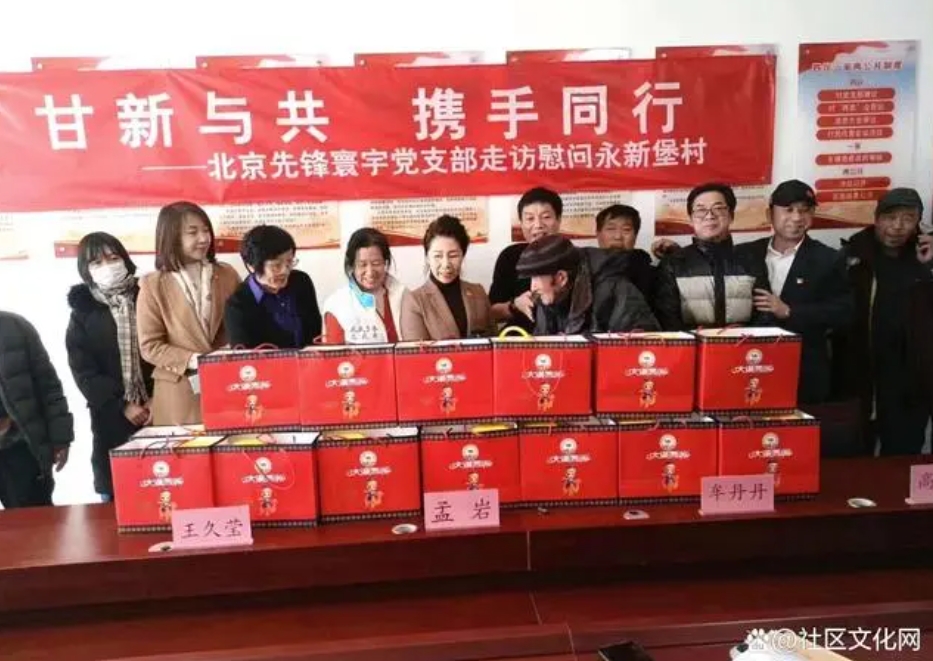 3月7日下午,海淀区“甘家口街道两新组织党建联盟”副主席单位——北京先锋寰宇网络信息有限责任公司党支部书记、董事长孟岩,率公司高管到甘家口街道派驻第一书记任职的延庆区永宁镇永新堡村进行走访调研和慰问。