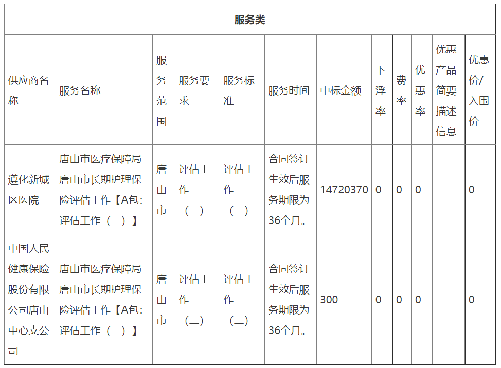 二、项目名称:唐山市长期护理保险评估工作(A包、B包)(双盲评审)