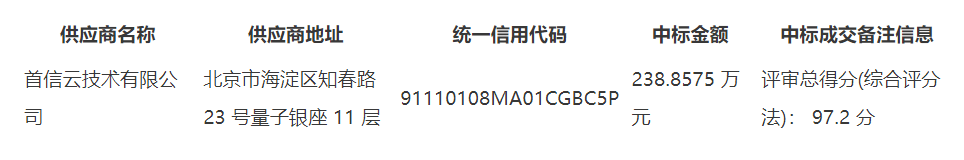 中标成交供应商地址:北京市海淀区知春路 23 号量子银座 11 层