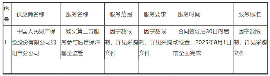供应商名称:中国人民财产保险股份有限公司绵阳市分公司