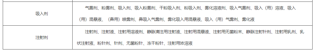 (八)西药剂型以《中国药典》“制剂通则”为基础进行合并归类处理,未归类的剂型以《药品目录》标注的为准。合并归类的剂型见下表: