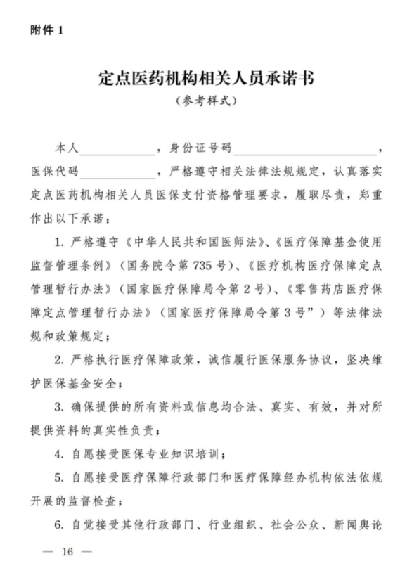 第十九条 医疗保障经办机构向定点医药机构提供相关人员履行服务承诺书文本,督促定点医药机构及时组织相关人员作出服务承诺。
