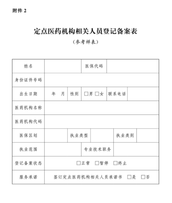 第十五条 登记备案内容包括:医保相关人员代码、姓名、身份证号、医药机构名称及代码、医保区划、执业类型、执业类别、执业范围、专业技术职务、登记备案状态、服务承诺等。