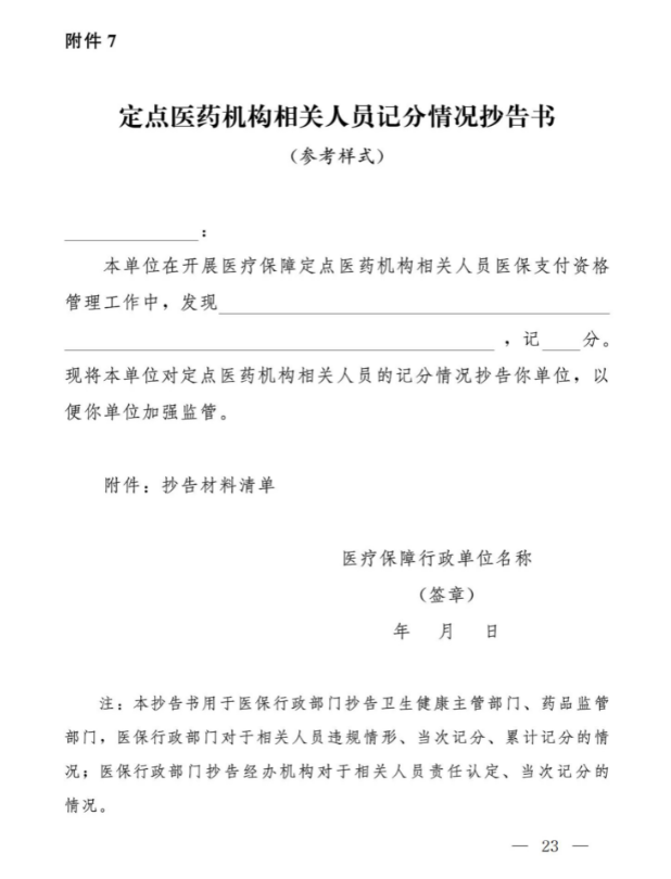 第二十三条 相关人员出现违反服务协议、违背服务承诺的行为,医疗保障经办机构可根据规定,参照记分标准对相关人员记分。