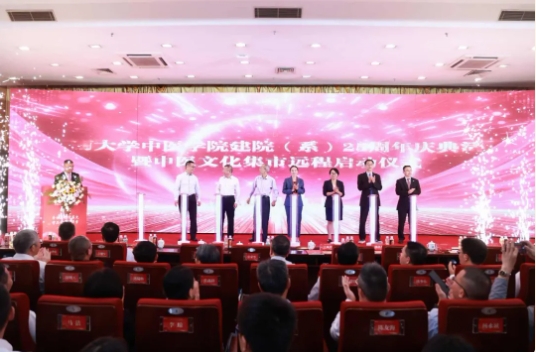 大会伊始,会场举办中医学院建院25周年系列活动暨中医文化集市启动仪式。伴随着灿烂烟火升起,在全体参会人员的见证下,暨南大学中医学院建院25周年庆祝大会正式开始,寓意着中医学院展开新的篇章,冉冉升起,再攀高峰!