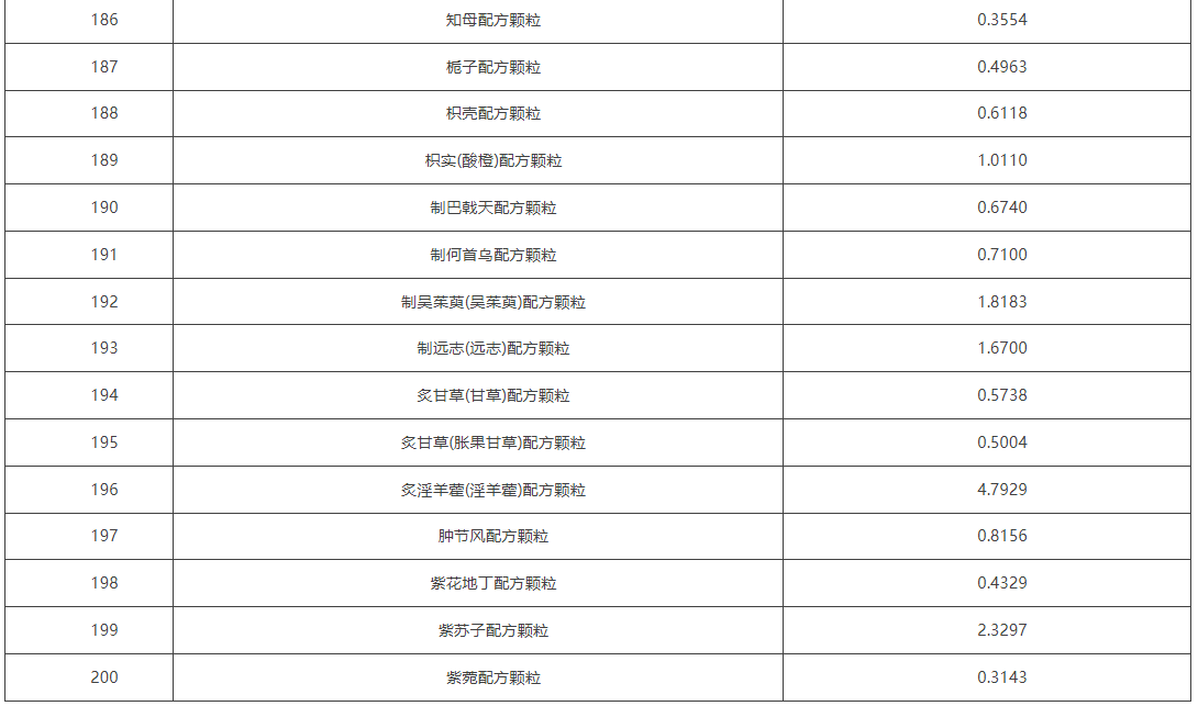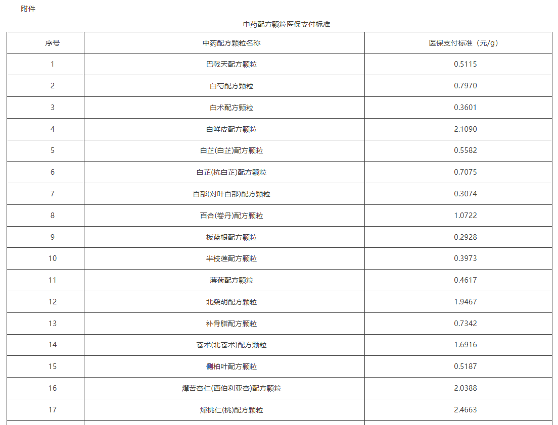 为进一步支持中药配方颗粒临床规范管理,促进中药配方颗粒合理用药,提高医保基金使用效率,更好保障人民健康,现对具有中药配方颗粒国家药品标准的200个中药配方颗粒品种制定医保支付标准,有关事项通知如下: