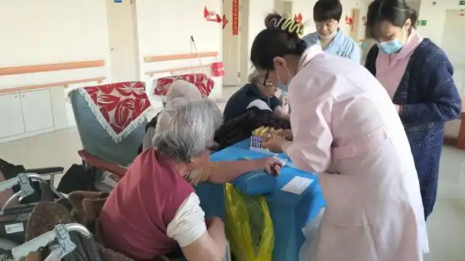 每日清晨,为了保证老人们既能享受到义诊服务,又不影响正常生活作息,医护人员们便早早抵达养老院,迅速而有序地在养老院活动区域布置临时诊疗点。尽管天气略带寒意,但现场氛围却十分热烈,老人们在工作人员的引导下,有序排队,满怀期待地等待接受检查。此次义诊包括血压、血糖检测、静脉采血等。同时,针对常见的糖尿病、高血压等慢性疾病,医疗团队不仅进行了详细的检查,还为居民们普及了中医方面的健康知识,指导他们如何正确预防疾病、保持良好的生活习惯,增强自我保健意识,力求为老人提供全方位的健康评估。