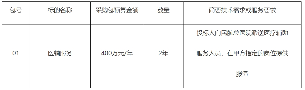 项目名称:民航总医院医辅服务采购项目